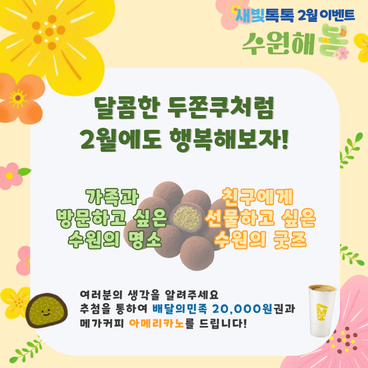 ○ 참여방법: 설문투표 ‘새빛톡톡 수원해봄 이벤트’ 참여