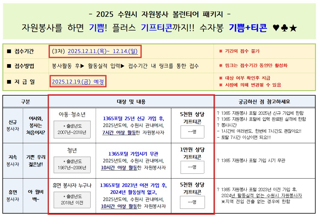 ★ 2025년 3차 지급! 2025 수원시 자원봉사 볼런티어 패키지_수자봉 기쁨티콘 ★