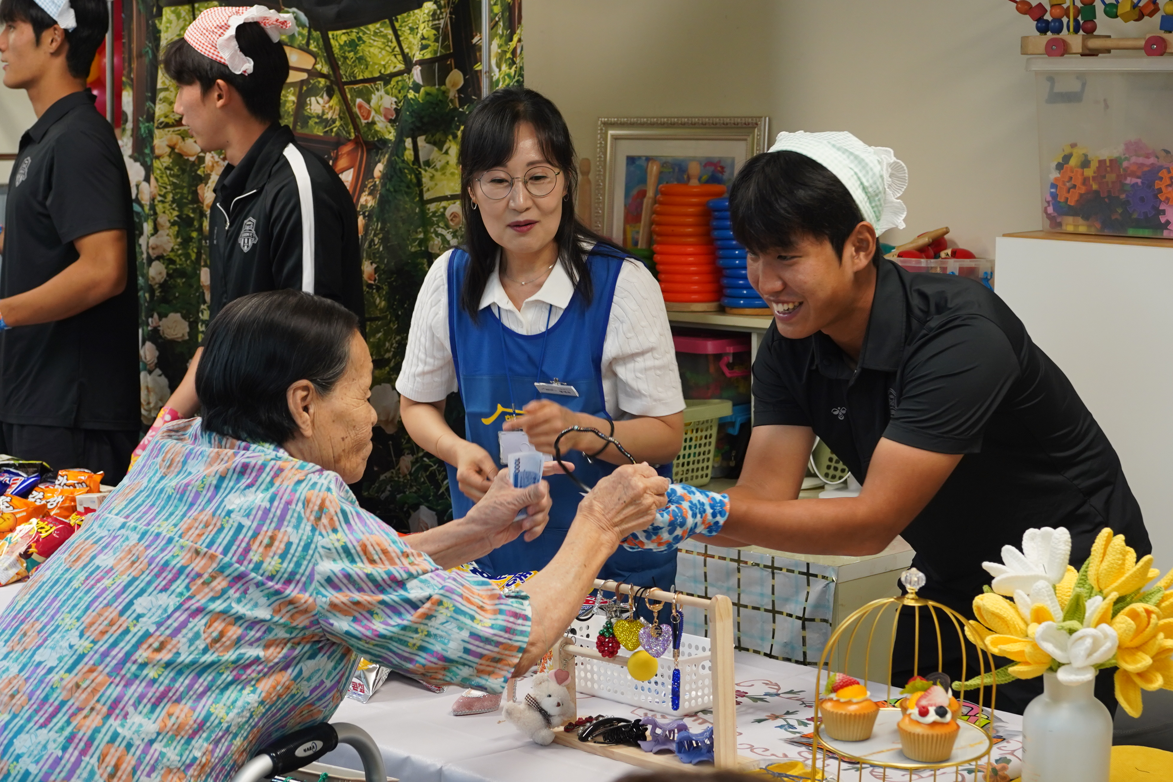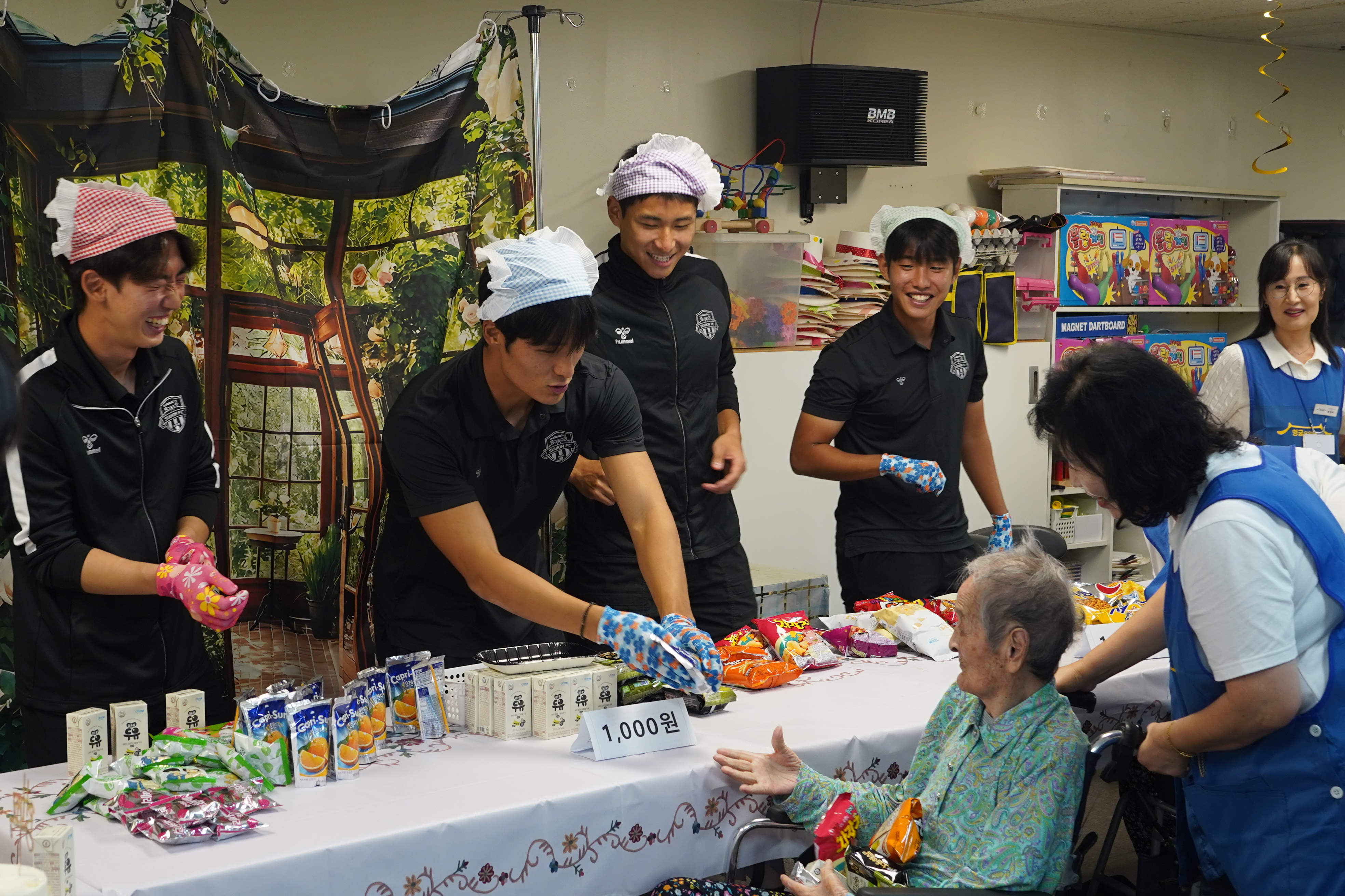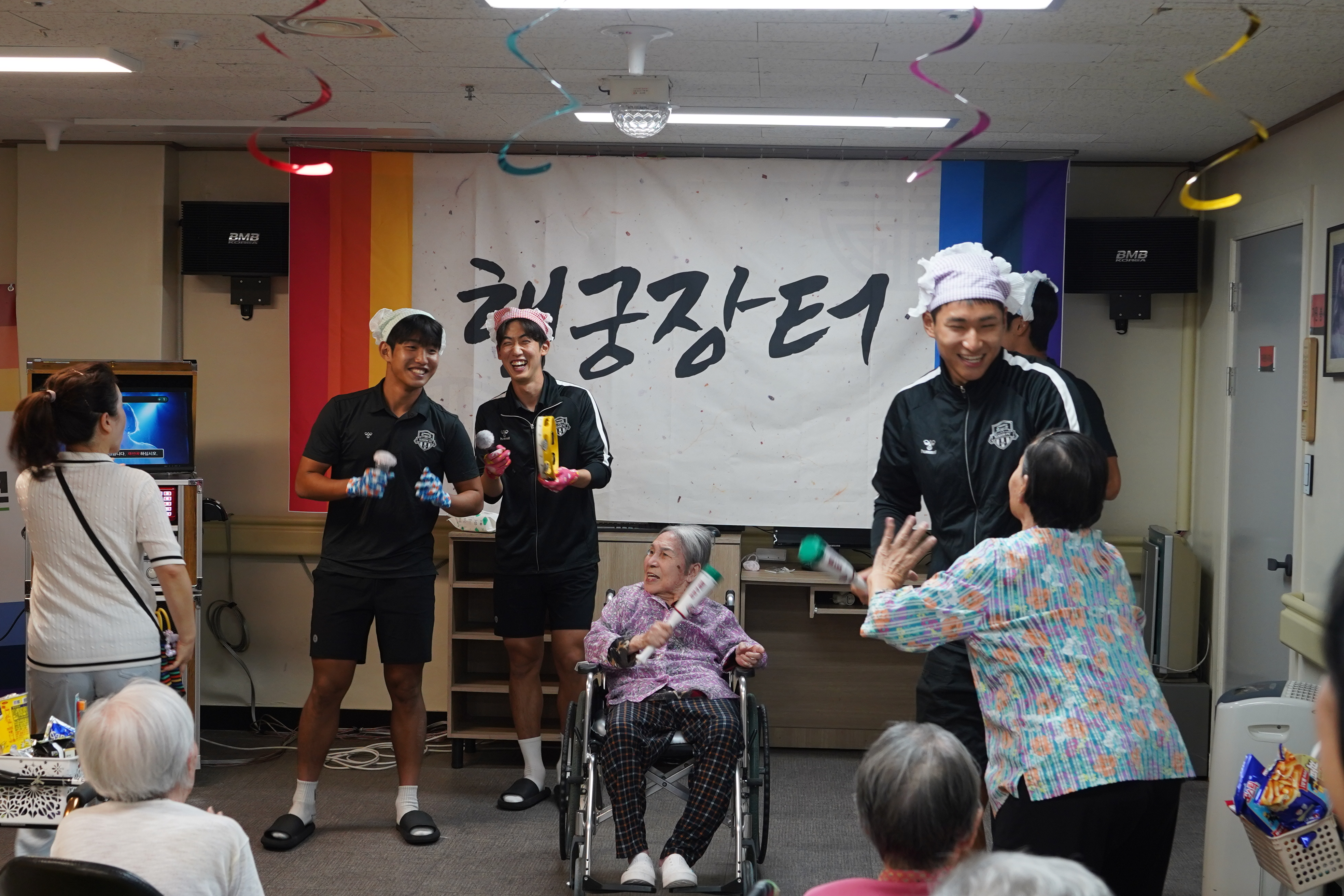 수원FC 퓨처스 선수단이 행궁요양원 어르신들과 함께한