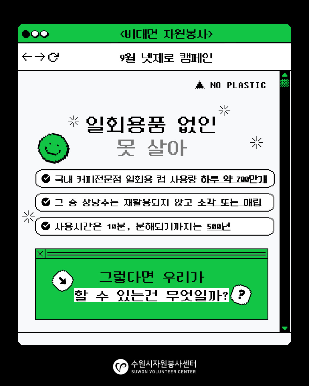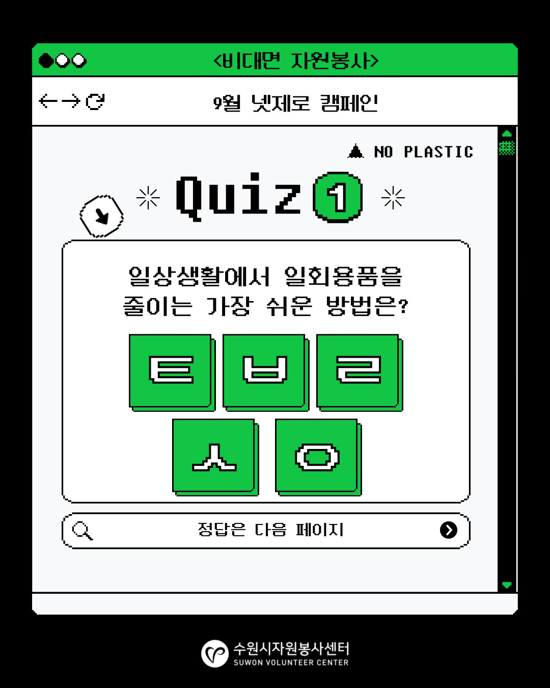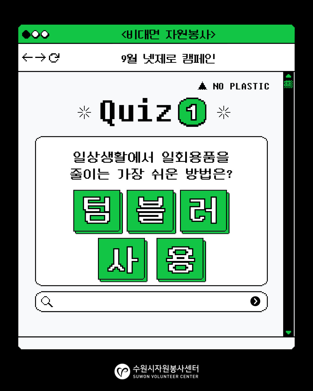 ☞ 환경교육 퀴즈풀기 : (5문제 중 3문제 이상 맞혀야 봉사시간 인정)