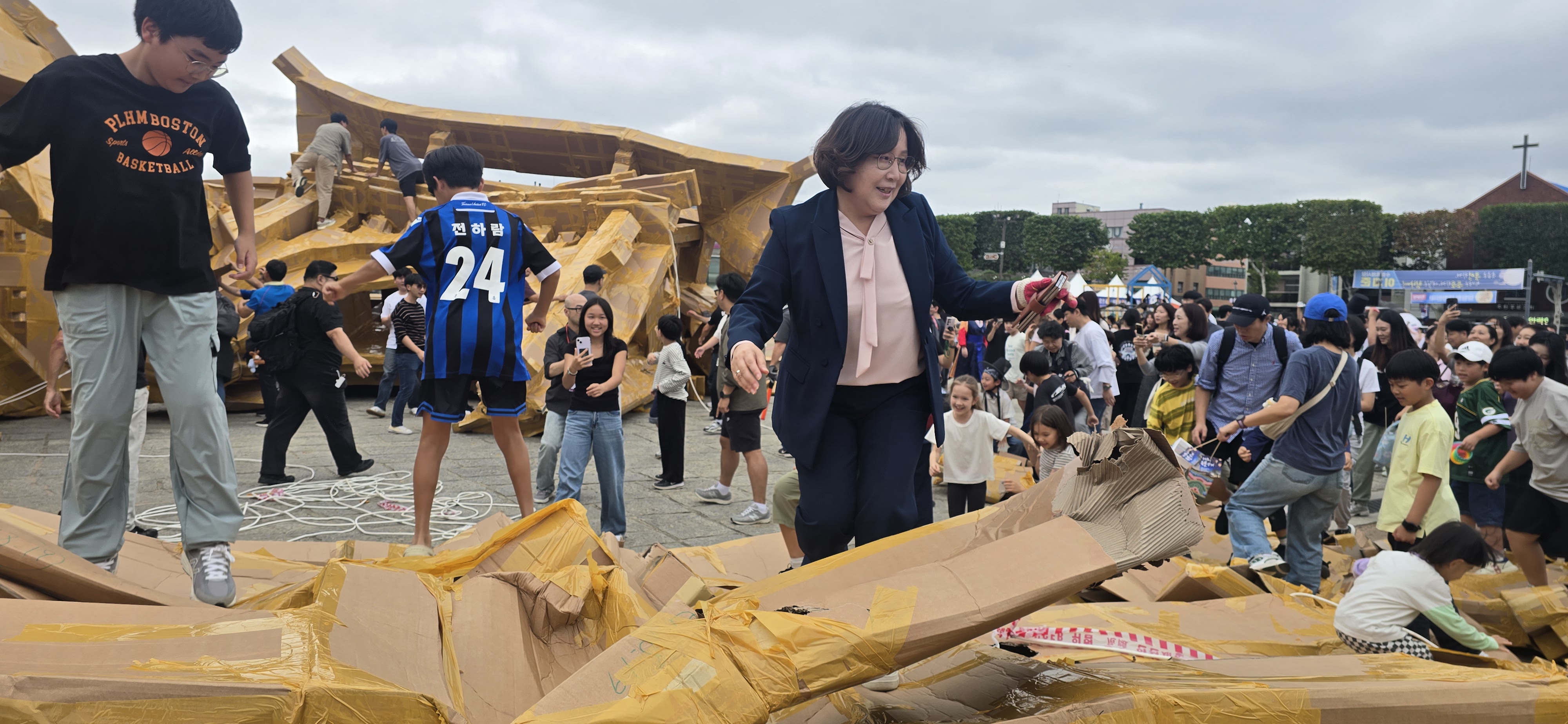 축제의 마지막 날, 이 거대한 종이 팔달문은 다시 시민들의 손에 의해 해체되었다. 하지만 그 무너짐은 끝이 아니라 새로운 경험이었다. ‘쌓고, 잇고, 무너뜨리는’ 일련의 과정 속에서 시민들은 단순한 관람객이 아닌 문화유산의 공동 창조자로서 축제의 의미를 깊이 체험했다. 참여한 한 시민은 “아이와 함께 상자를 자르고 붙이며 처음부터 끝까지 함께했다. 우리가 세운 성곽에 소원을 얹고, 마지막에는 해체까지 함께하니 평생 기억에 남을 추억이 되었다”고 소감을 전했다.