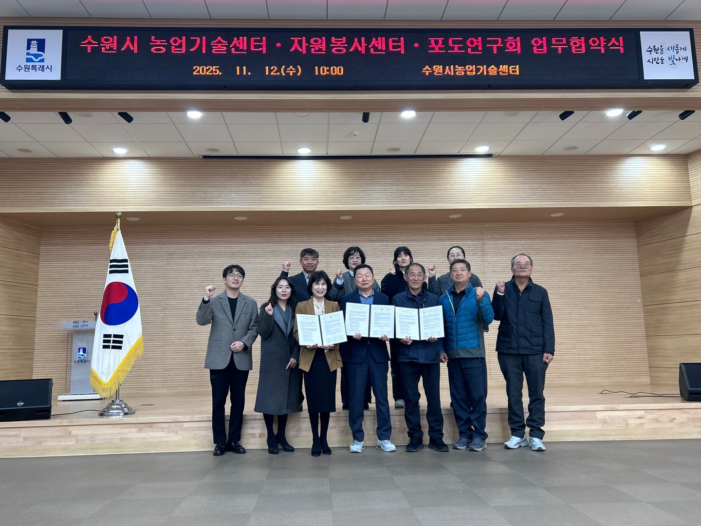 수원시자원봉사센터는 수원시농업기술센터, 수원시포도연구회와 함께 「업무협약 체결식」을 진행했습니다.