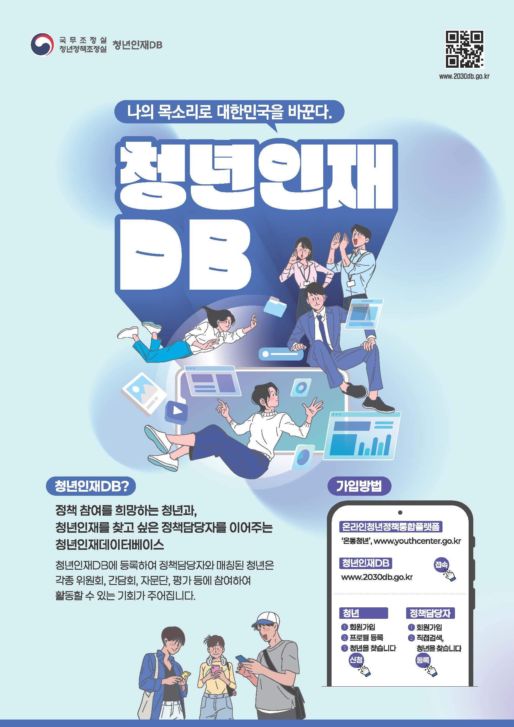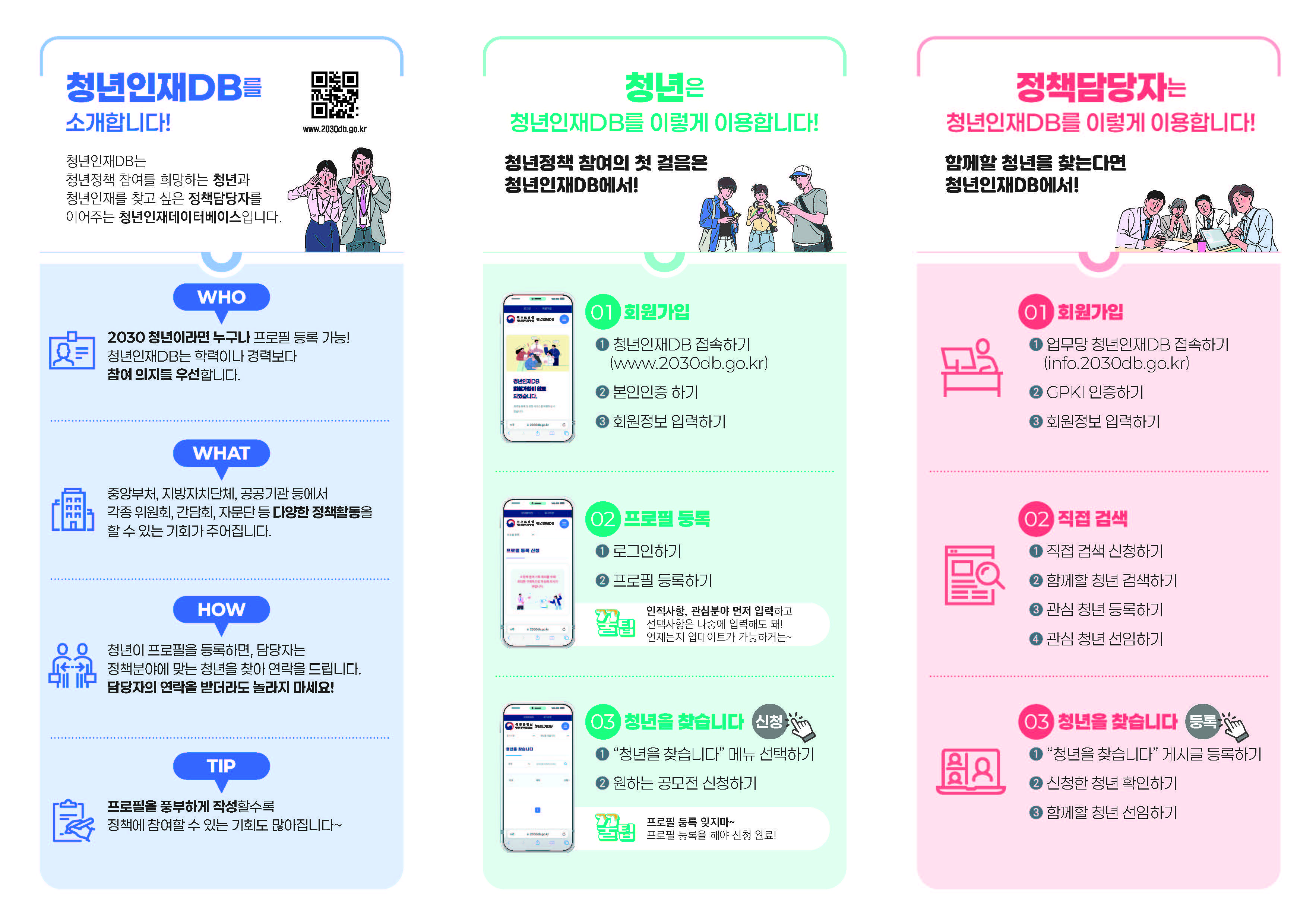 청년은 프로필을 등록하고, 정책담당자는 함꼐할 청년을 찾고! '청년인재 DB'