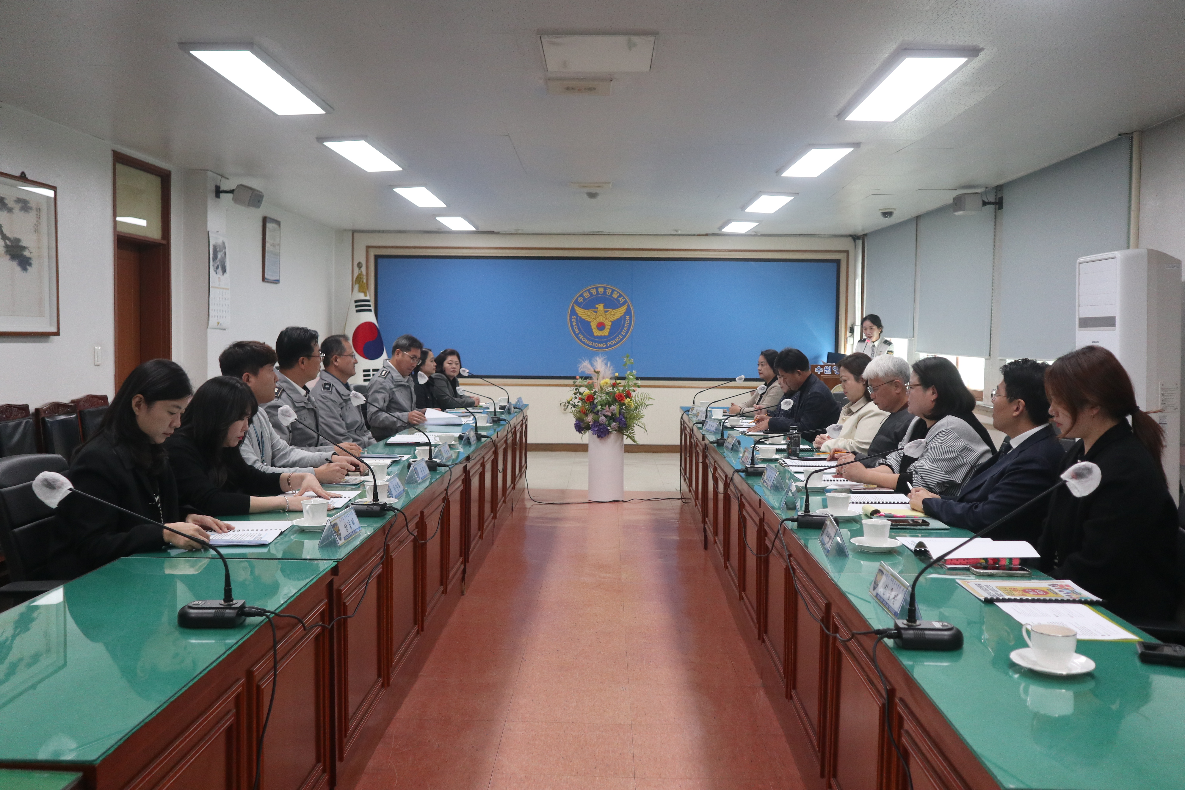 ▲ 28일 수원 영통경찰서와 수원시자원봉사센터, 영통학부모협회,가수원 영통경찰서 2층 회의실에서 '안전한 통학로 확보'와 관련한 간담회를 진행했다.